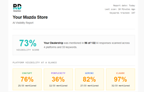 The problem is that these platforms do not give dealerships reporting. They do not tell you when you are mentioned. They do not tell you when a competitor is recommended instead. And they definitely do not tell you why.